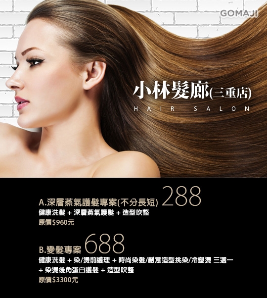 小林髮廊(三重店) - 143985是最近關注的一項還算不錯的商品,一樣是在Gomaji上發現的。我真的非常喜歡逛Gomaji,尤其很多東西價格都很不錯,也有不少優惠券可以用,下面是賣場提供的商品簡介: